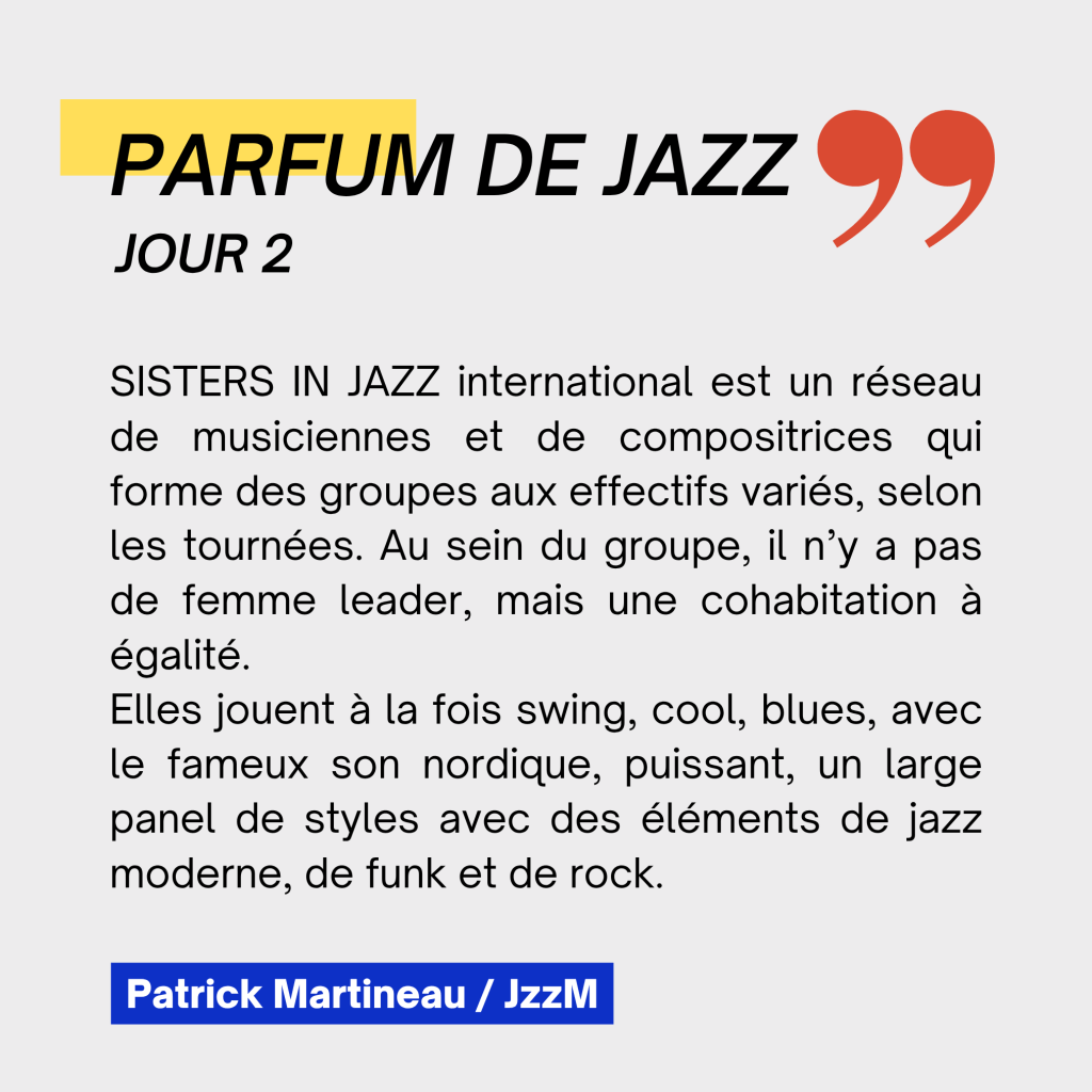 Chez les « Sisters in Jazz », il n’y a pas de femme de tête, mais une cohabitation à égalité : toutes les membres interviennent en tant que compositrices et marquent le son du groupe de leur empreinte individuelle de la même manière.